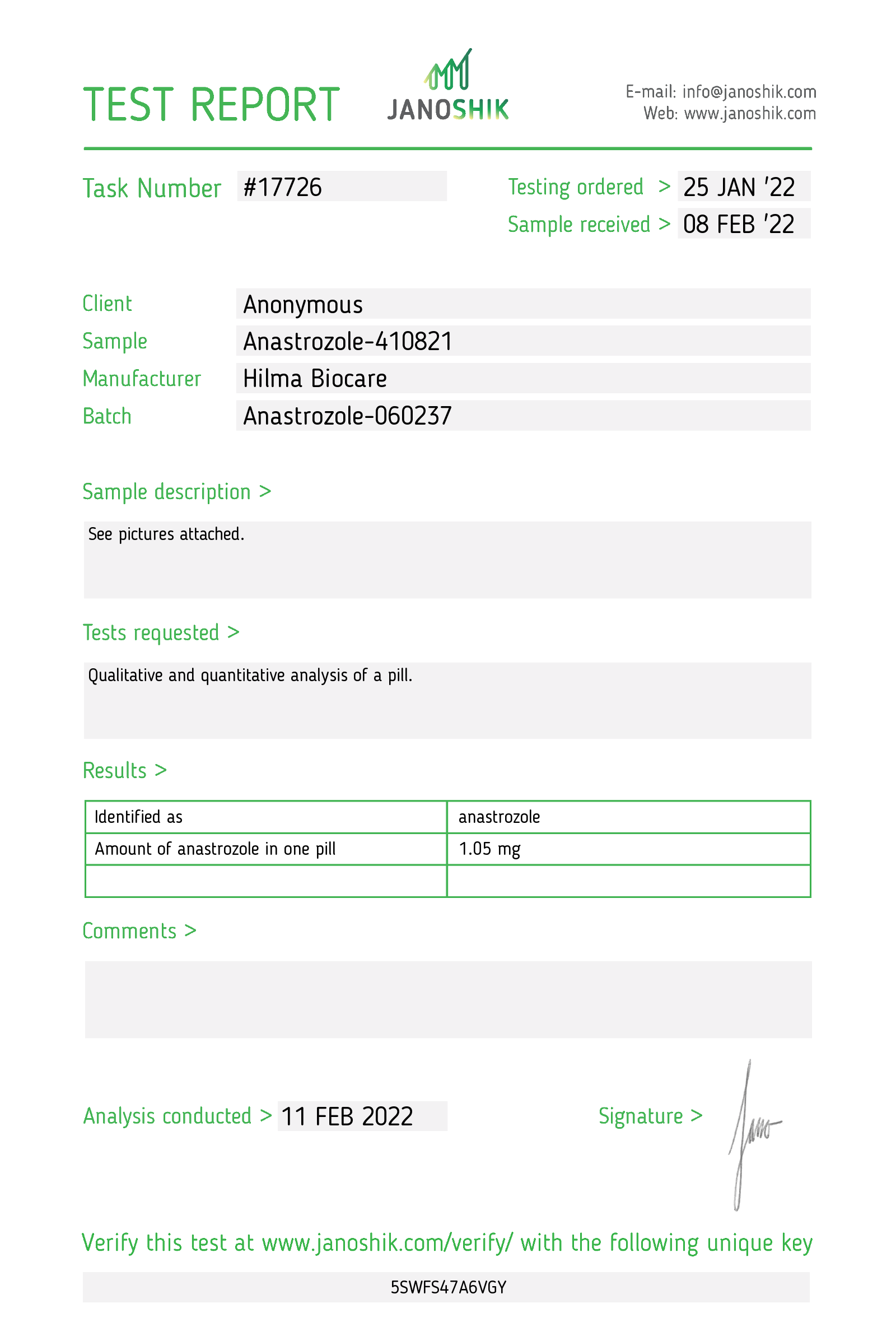 Substance: Anastrozole